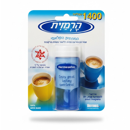 טבליות להמתקה של קפה, תה ומשקאות חמים. דיספנסר פטנט המאפשר הוצאה נוחה של טבליה אחת בכל לחיצה. מאושר לשימוש על ידי האגודה הישראלית לסוכרת. כל טבליה שוות ערך לכפית סוכר אחת. תכולה: 1400 טבליות
