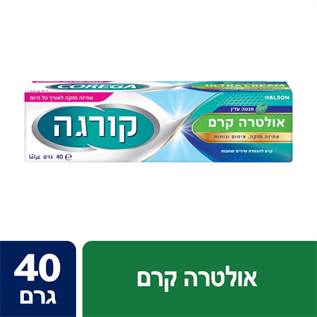 ראשי  / חלל הפה ותותבות  / הצמדה וניקוי תותבות  / קורגה אולטרה קרם לאחיזה חזקה של שיניים תותבות