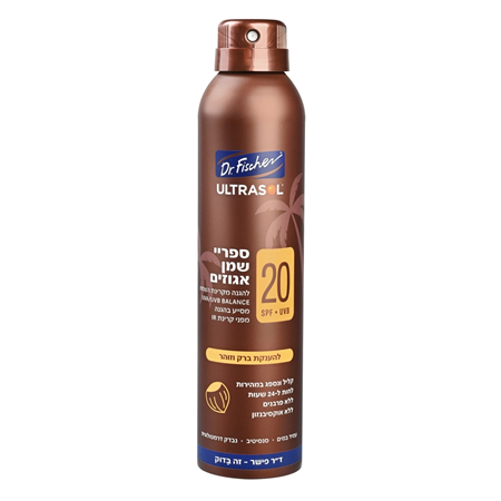 ספריי שמן אגוזים יבש וקליל המאפשר כיסוי מלא ונוח של האזורים החשופים לשמש. טכנולוגיית PURE SPRAY המאפשרת התזה רציפה ללא גז, לכיסוי מירבי, מהיר ואחיד. UVA&UVB BALANCE SPF20. ללא פראבנים, נבדק דרמטולוגית. עבר בהצלחה את מבחן Sensitive, המעיד על התאמתו במיוחד לעור רגיש, עמיד מאוד במים. מכיל שמן אגוזים להענקת לחות, ברק וזוהר. מכיל ויטמין E שהינו אנטי אוקסידנט, להגנה מפני רדיקלים חופשיים ולשמירה על מראה עור בריא לטווח הארוך. מעניק לעור מגע משי רך ונעים. בניחוח נעים במיוחד.