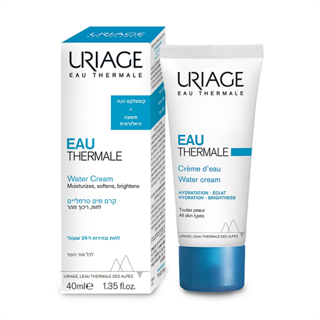 אוריאז' קרם מים טרמליים מספק לחות וריכוך אינטנסיביים לכל סוגי העור, עם תוצאה של עור זוהר וגמיש לאורך 24 שעות. הקרם קליל ונמס בקלות על העור, מספק הלחות הנדרשת ומעניק מראה רענן ובריא. מכיל קומפלקס H2O ייחודי וחומצה היאלורונית. הקרם נספג במהירות, מעניק לחות עשירה, מרכך את העור ומשווה לו מראה זוהר ובריא.
