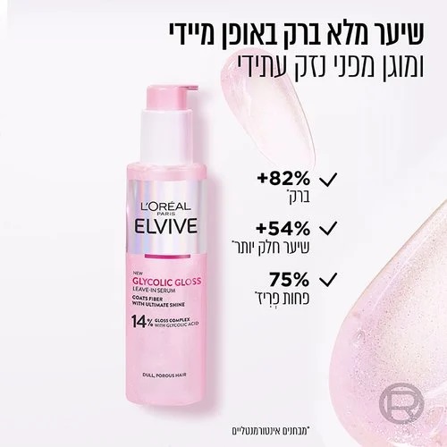 ראשי  / טיפוח השיער  / עיצוב וטיפוח  / אלביב Glycolic Gloss סרום משקם ללא שטיפה