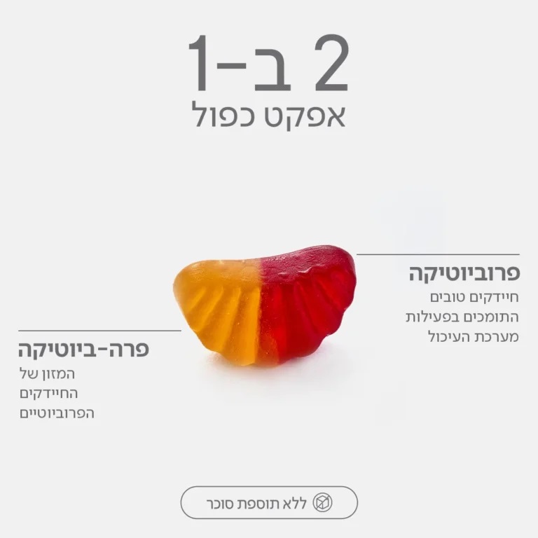 טבליות לעיסה ייחודיות המשלבות חיידקים פרוביוטיים בתוספת סיבים פרה-ביוטיים (FOS), בטעמים טבעיים של תות ומנגו. פורמולה חדשנית במרקם ג'לי נעים, עשויה לתמוך באיזון פלורת המעי ולתרום לשגרת תזונה יומיומית מאוזנת.
