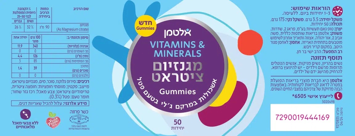 אלטמן גאמיס מגנזיום ציטראט 90 מ"ג - סוכריות גומי טבעוניות | או-פארם