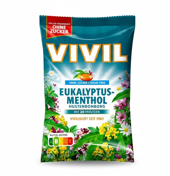ויויל סוכריות ללא סוכר בטעם מנטה אקליפטוס