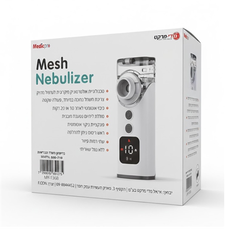 • טכנולוגיית Mesh מתקדמת: מאפשרת הפיכת התרופה לערפל מיקרוני דק במיוחד לחדירה מקסימלית למערכת הנשימה.