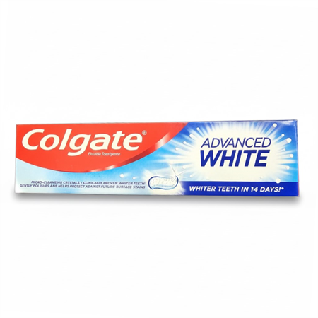 החזירו לעצמכם את החיוך הלבן והזוהר עם Colgate Advanced White. משחת שיניים מוכחת קלינית המסייעת בהסרת כתמים חיצוניים ומניעת הצטברות כתמים חדשים, למראה שיניים לבנות יותר תוך 14 ימים בלבד.
