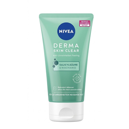 נקי את עורך ביסודיות עם NIVEA Derma Skin Clear Anti-Blemish Peeling. פילינג עוצמתי אך עדין, שפותח במיוחד לעור הנוטה לפגמים, פצעונים ונקודות שחורות. הפורמולה משלבת רכיבים פעילים לניקוי עמוק של הנקבוביות ללא ייבוש העור.
