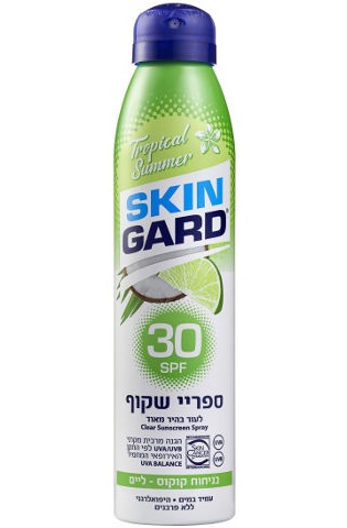 סקין גארד ספריי הגנה שקוף SPF30 בניחוח קוקוס-ליים | SKIN GARD