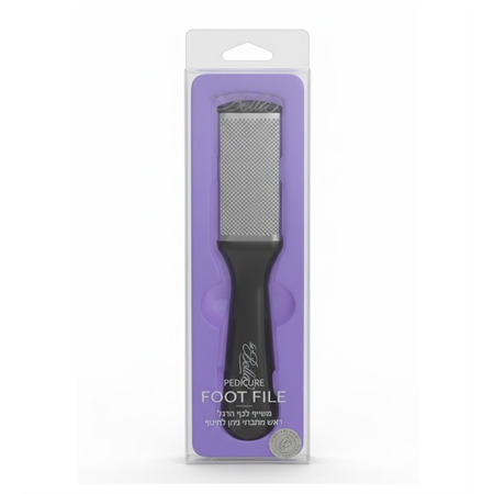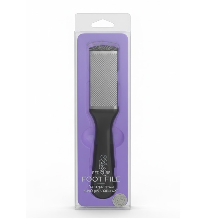 פצירה להסרת עור קשה וגס מכף הרגל מבית LA BELLE, עם ראש מתכתי וידית אחיזה נוחה לשימוש. נוחה לתפעול וניתנת לחיטוי, לשמירה על היגיינה מקסימלית.