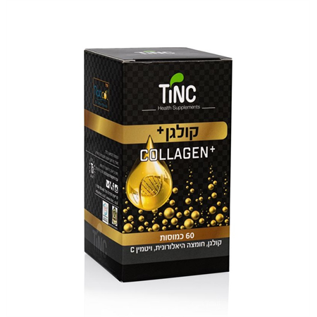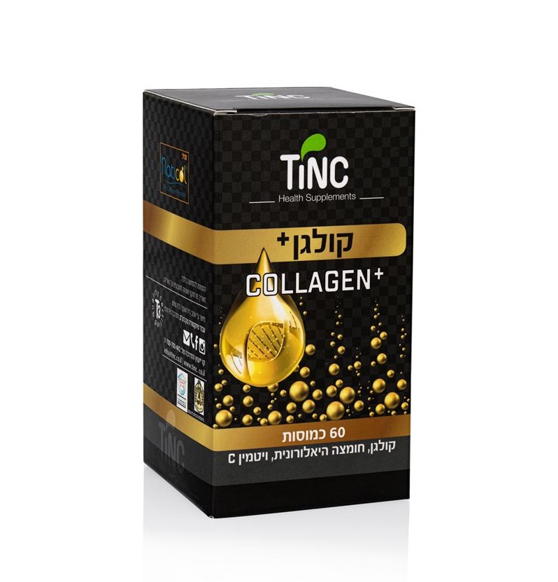 COLLAGEN+ מבית TINC הוא תוסף תזונה מתקדם המשלב פפטידי קולגן דגים איכותיים Naticol®, חומצה היאלורונית וויטמין C, לתמיכה במבנה העור, בשמירה על לחותו ובמראה גמיש, מוצק ומלא ברק. הקולגן מופק מעור דגים בתהליך הידרוליזה אנזימטי ייחודי, שמבטיח מסיסות גבוהה וספיגה אופטימלית בגוף. החומצה ההיאלורונית מסייעת במילוי בין-תאי וספיחת מים בעור, בעוד ויטמין C משפר את ספיגת הקולגן בגוף.