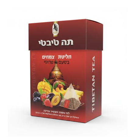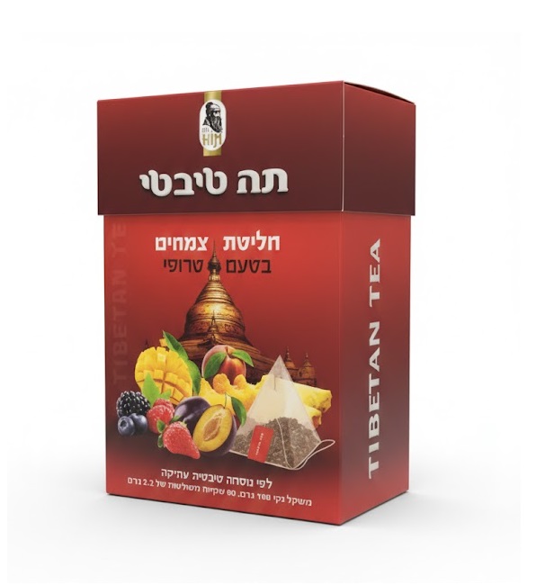 תב טיבטי -  חליטת צמחים ייחודית המבוססת על פורמולה טיבטית עתיקה, בתערובת עשירה של צמחי מרפא ופירות טבעיים. נטולת צבעי מאכל, חומרים משמרים ותוספים מלאכותיים. מתאימה לשתייה חמה או קרה, ומומלצת כחליטה יומיומית נעימה עם טעם פירותי-טרופי רענן.